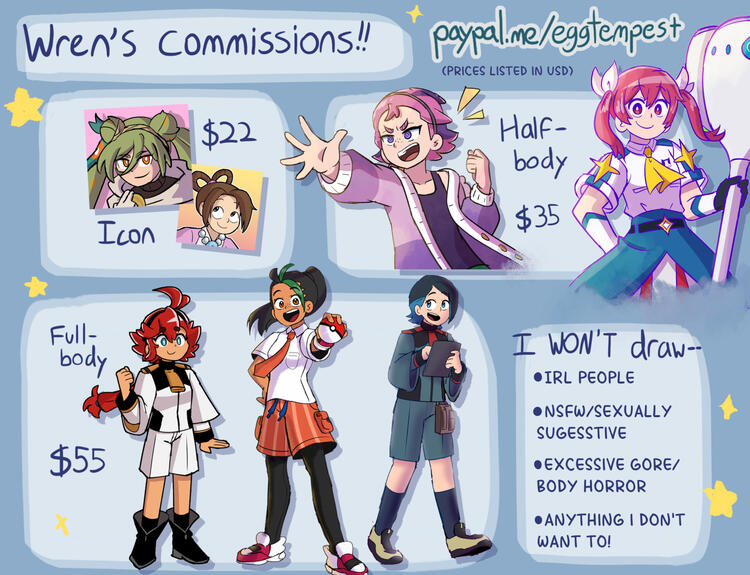 dm on twitter or tumblr for inquiries; check respective bios for open/closed statuspayment via paypal.me/eggtempesti reserve the right to decline a commission request for any reason!